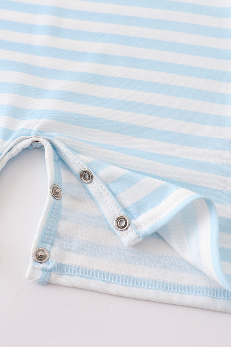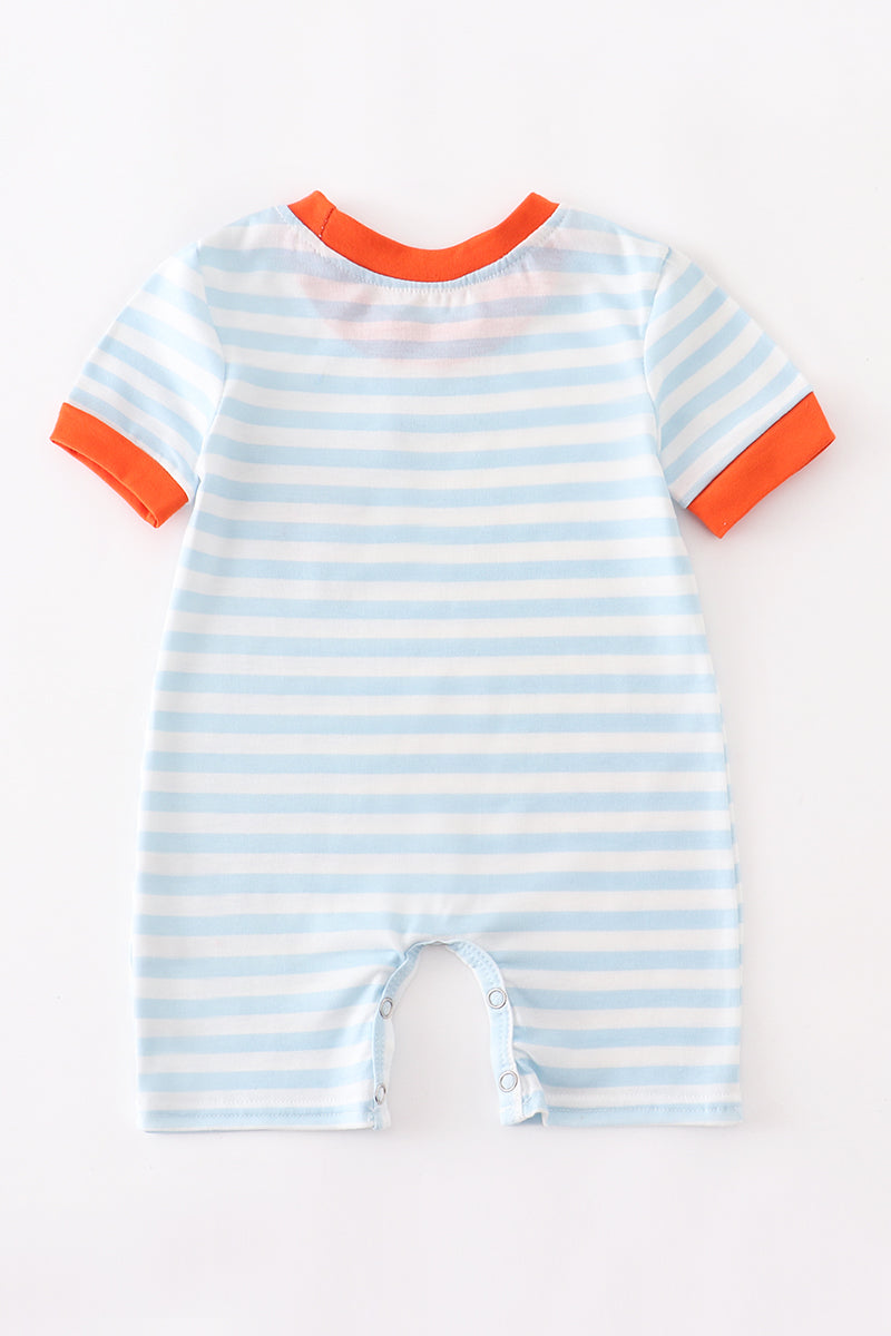 Blue Striped Embroidered Pumpkin Romper
