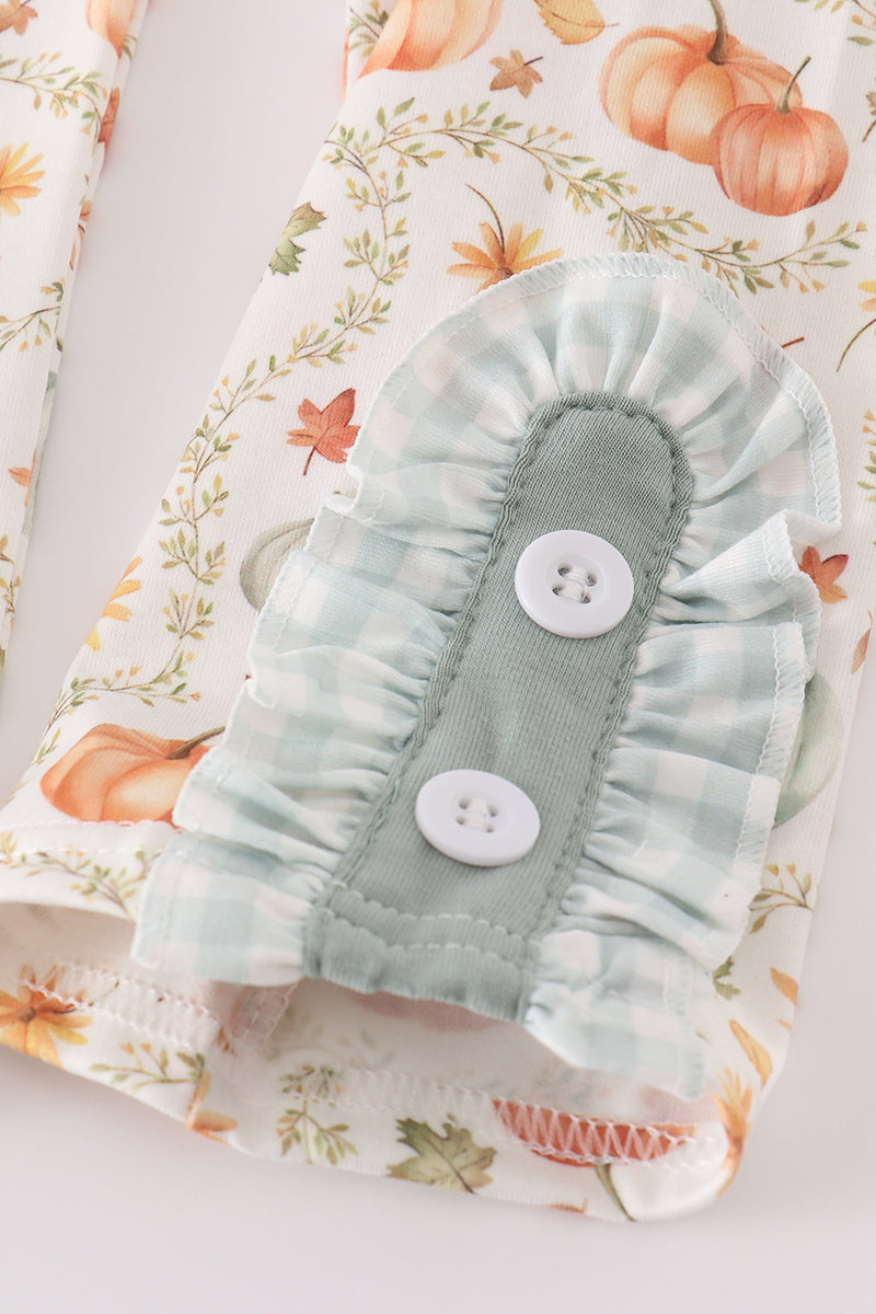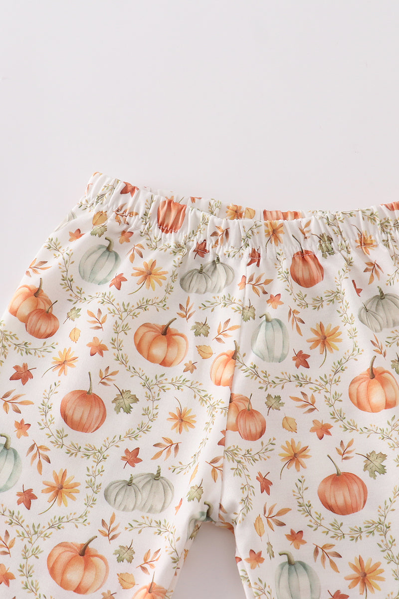 Dress your child in this enchanting set for family gatherings, playdates, or simply a day out enjoying the autumn leaves. The Festive Fall Pumpkin Pant Set is sure to be a staple in their wardrobe this season, making it a must-have for every little trendsetter.