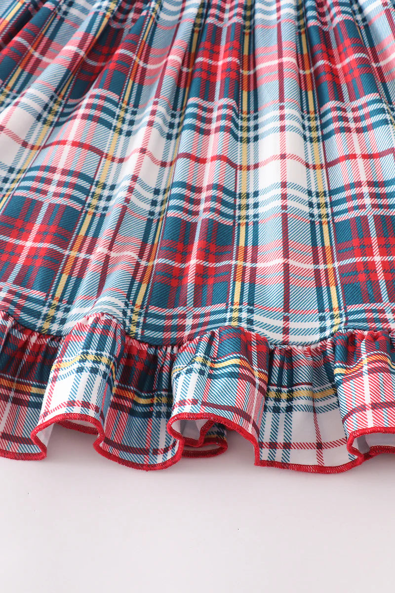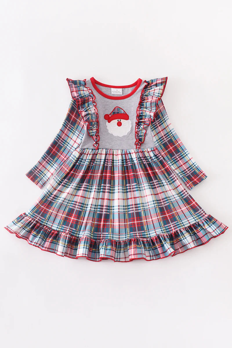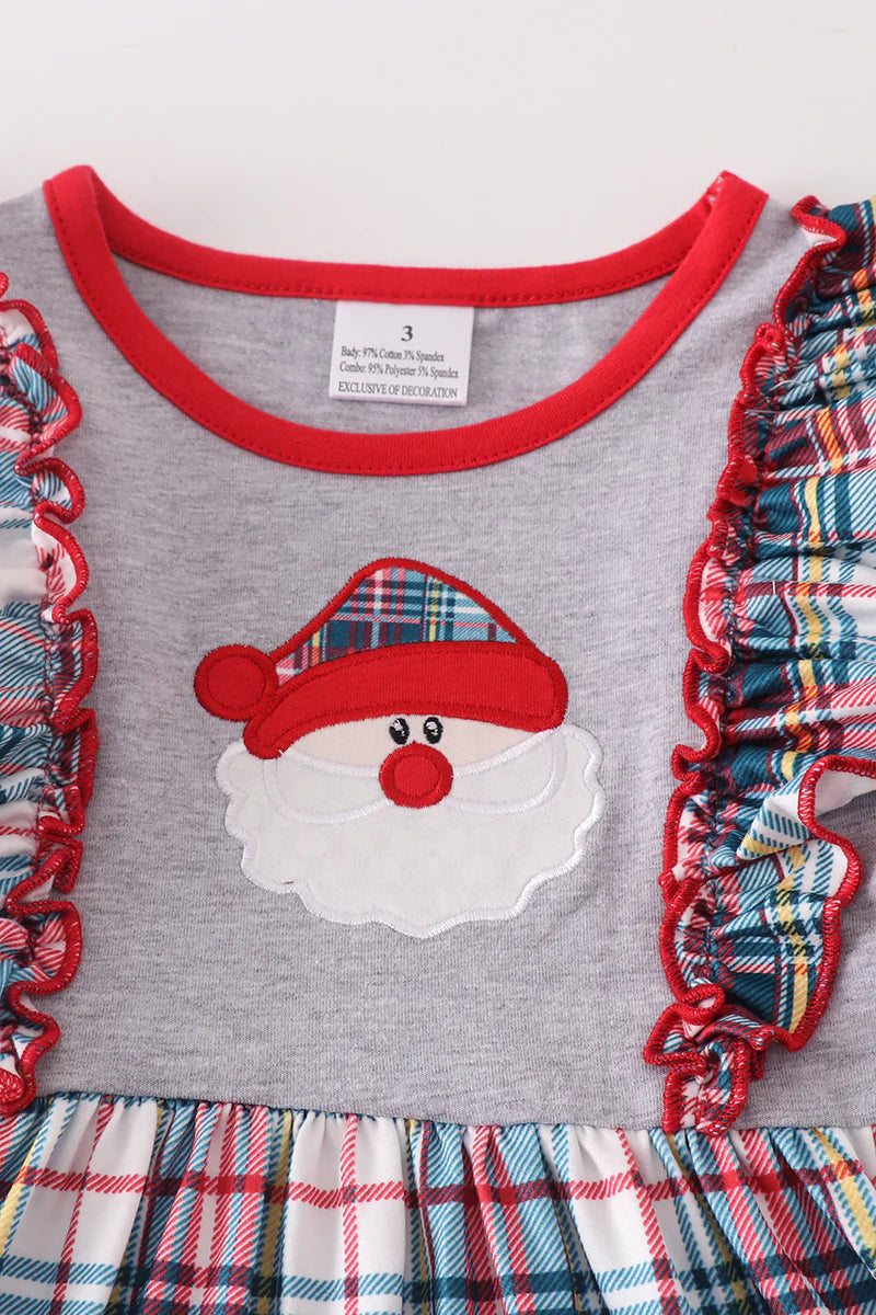 Grey Plaid Santa Ruffle Dress