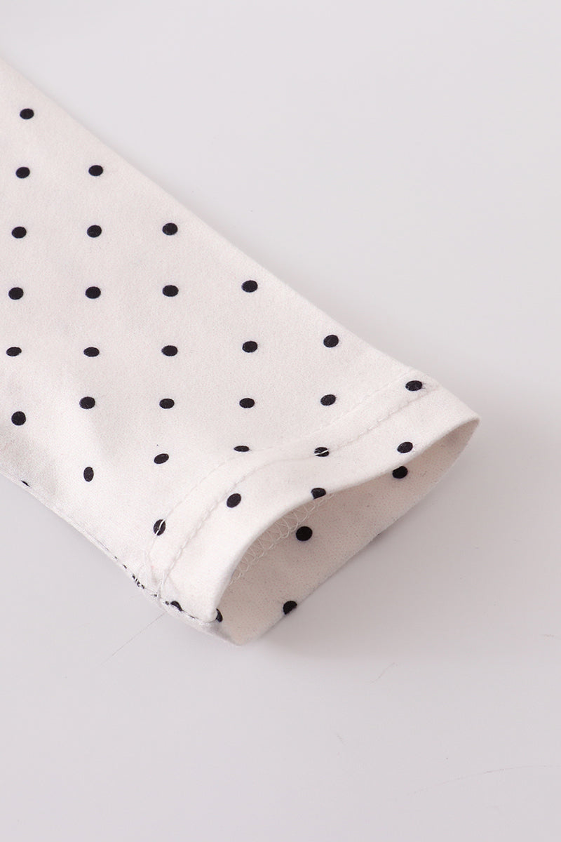 It is made from soft and comfortable fabric, ensuring that your little girl stays cozy all day long. The polka dot sleeves add a touch of sweetness, while the convenient snap buttons make dressing and changing a breeze.