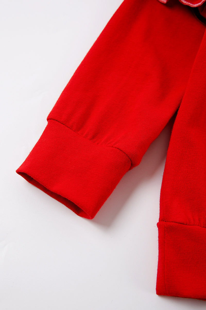 Introducing our adorable Lollipop Heart Applique Ruffle Top, the perfect addition to any little girl's wardrobe! This charming long-sleeved top is designed with love, featuring delightful Lollipop Hearts appliques that will melt hearts everywhere.