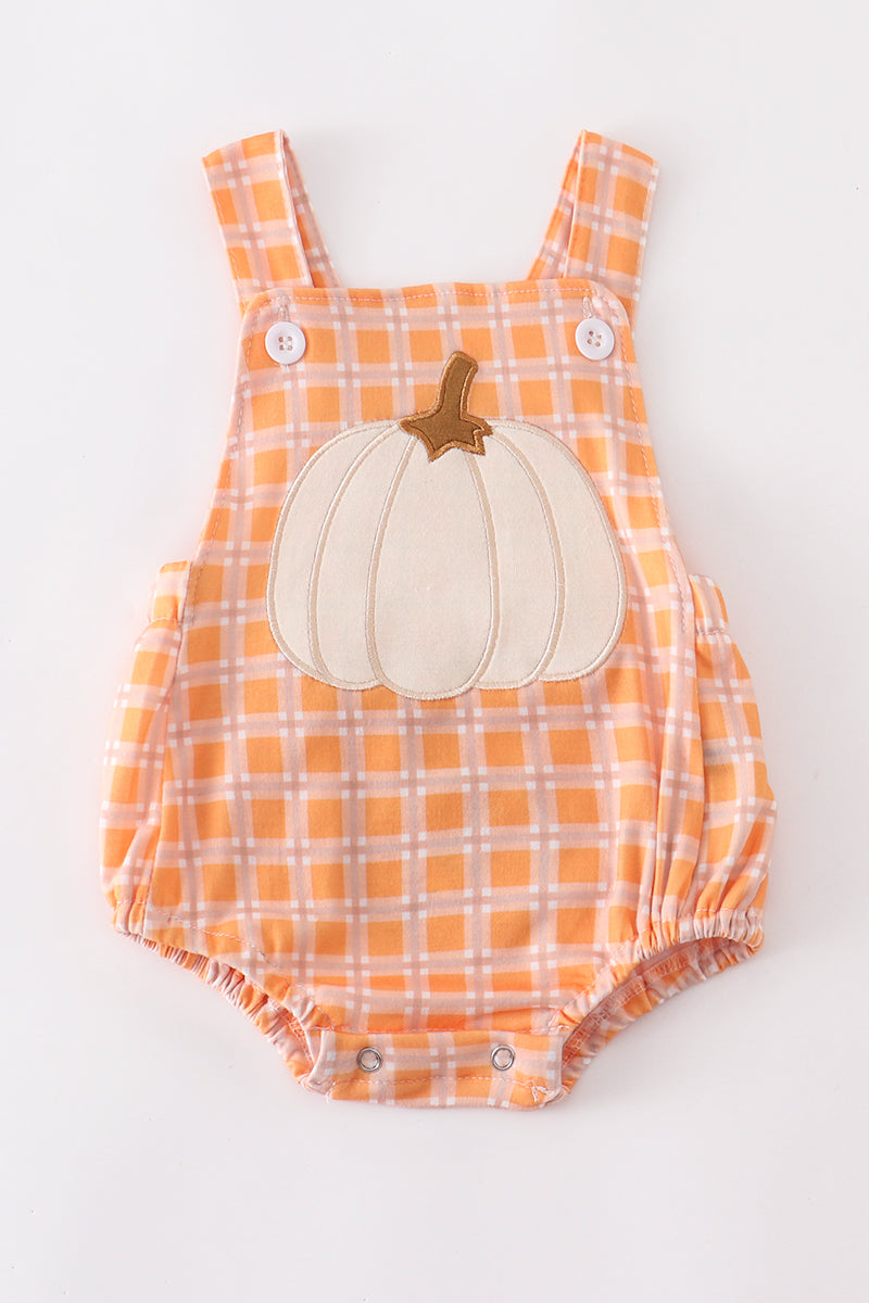 With its charming pumpkin focal point and cozy plaid design, this bubble is sure to capture attention wherever your little one goes. Crafted with love and attention to detail, this bubble combines style and comfort for your baby boy. Whether he's exploring the pumpkin patch or playing in the crisp Autumn leaves, he'll be dressed in style and ready for any Fall adventure.