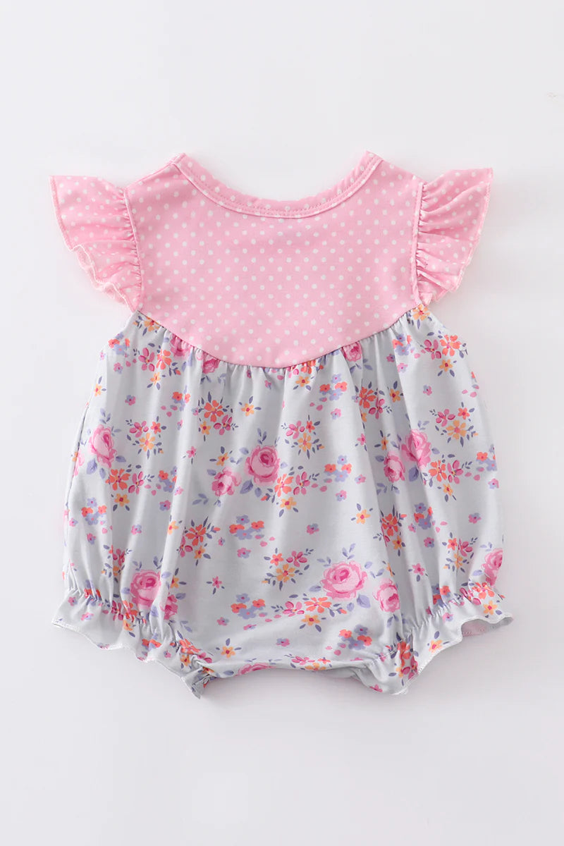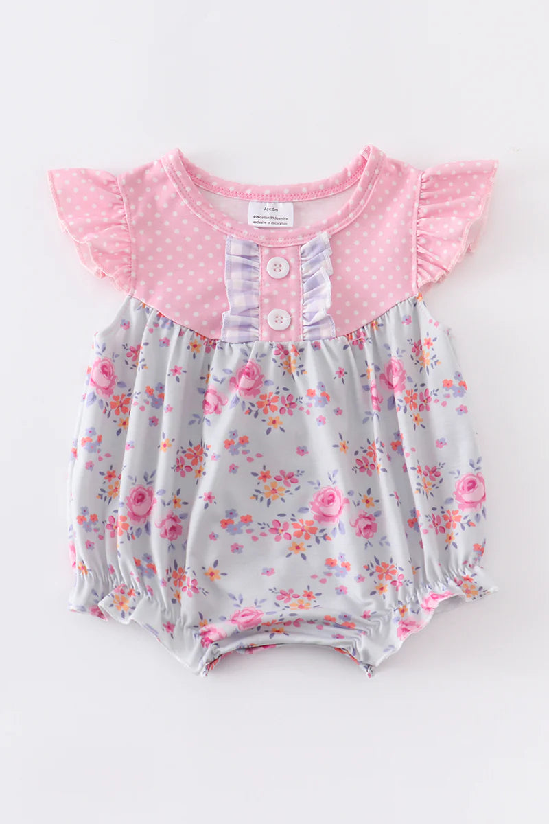 Get ready to add a touch of whimsical charm to your little girl's wardrobe with our Pink Floral Bubble Paired with Polka Dots! This adorable bubble features a delightful mix of contrasting patterns that will make your little one stand out in style. 🌸 Here's why this bubble is a must-have for your little fashionista: