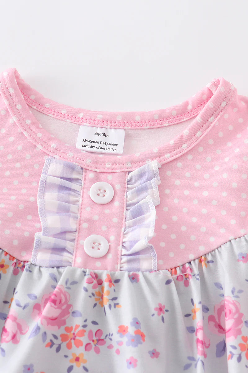 Whether it's a special occasion or just a day out with the family, this Pink Floral Bubble Paired with Polka Dots is sure to become a favorite in her wardrobe. Add it to your cart today and let your little one shine in style! ✨