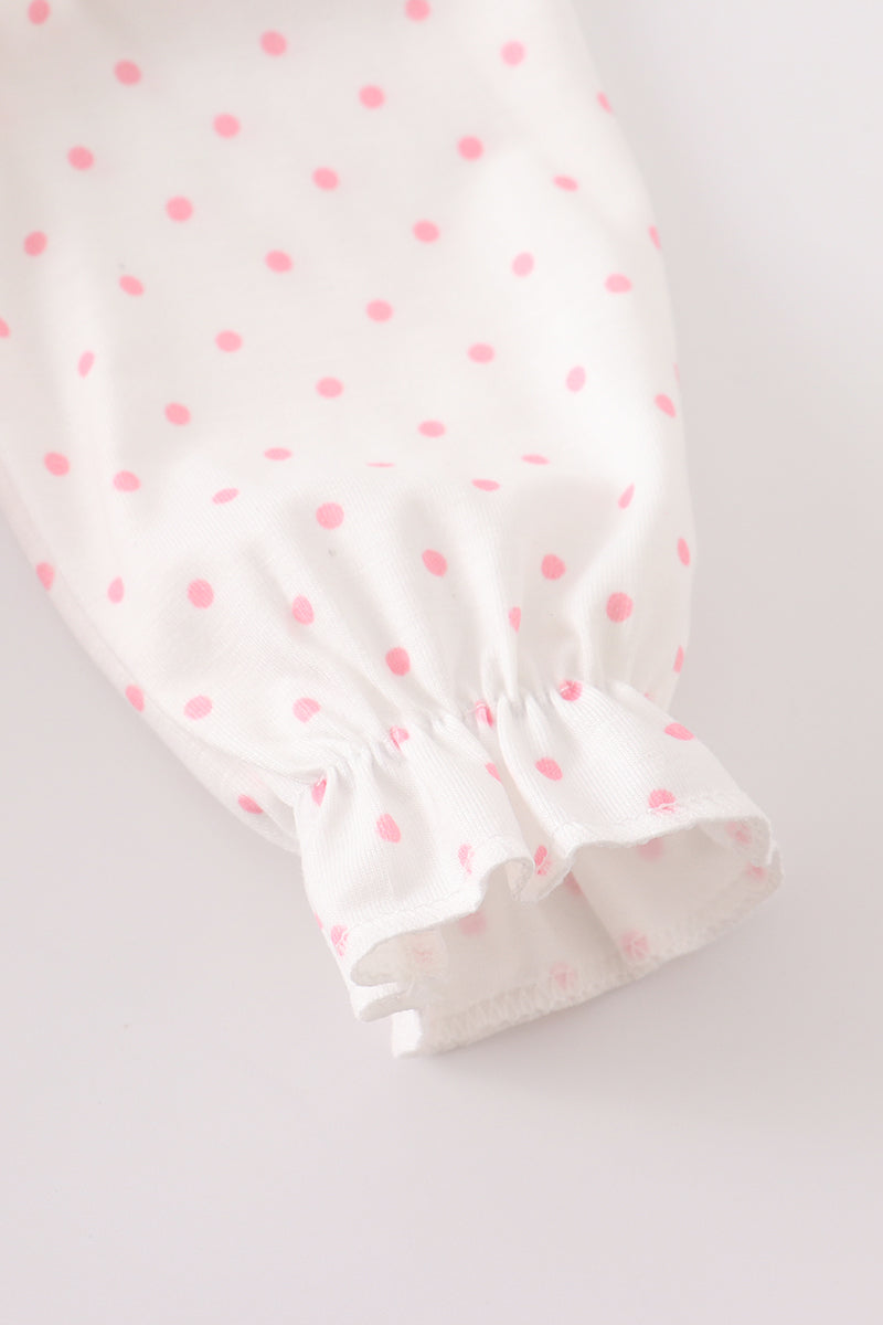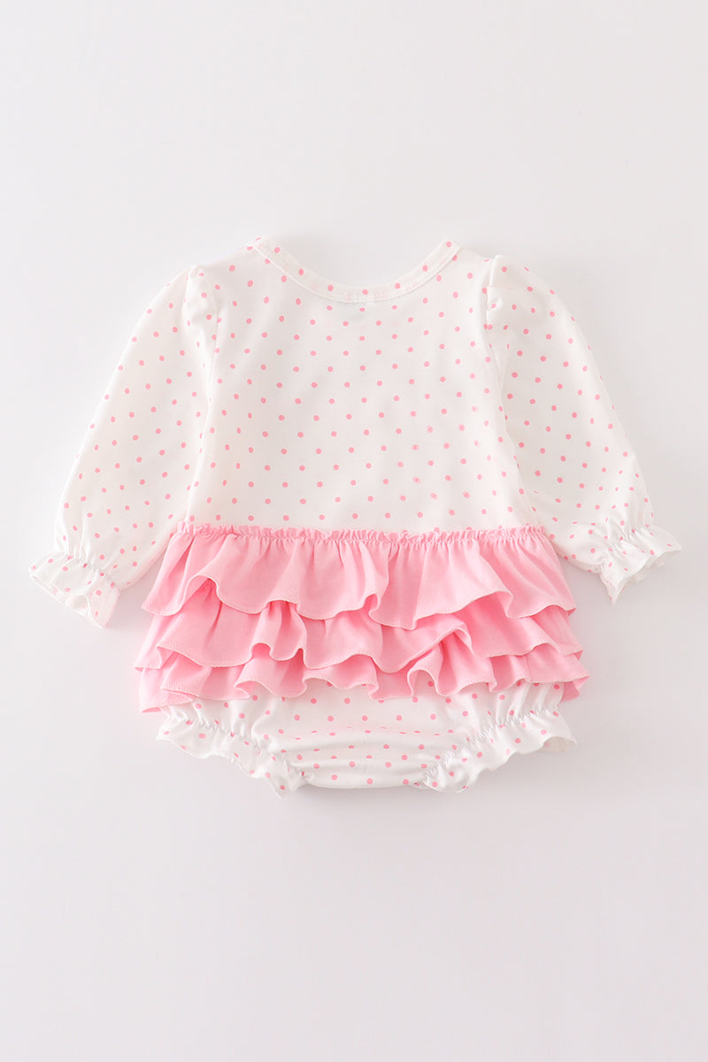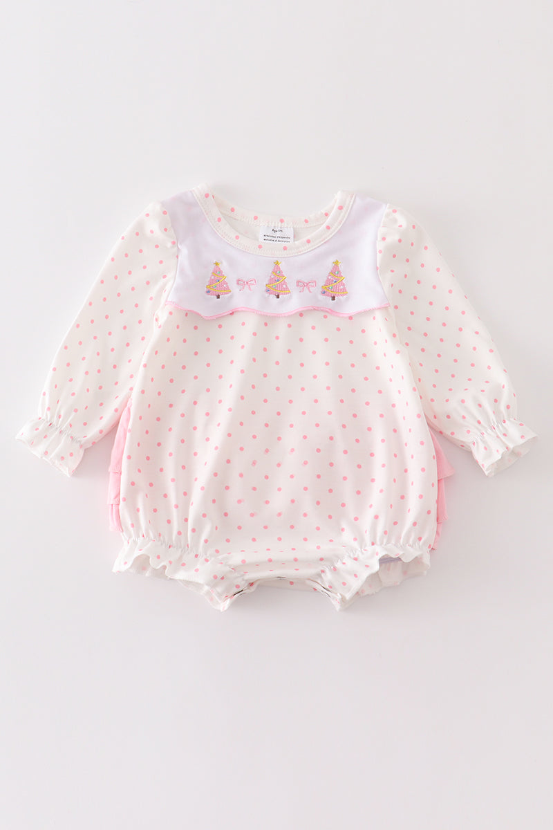 Pink Polka Dot Christmas Tree Ruffle Romper