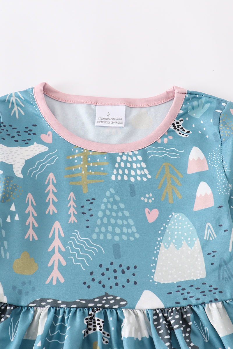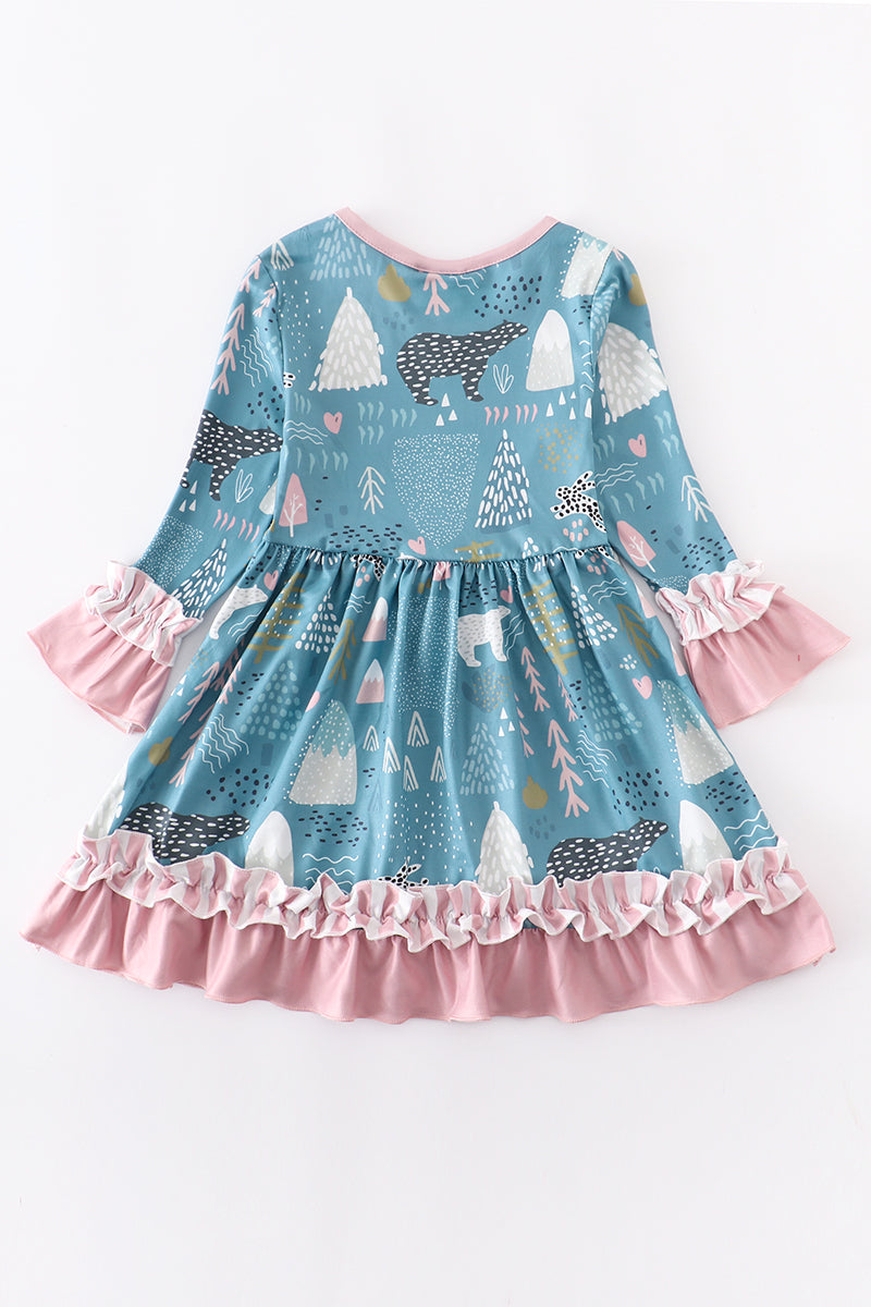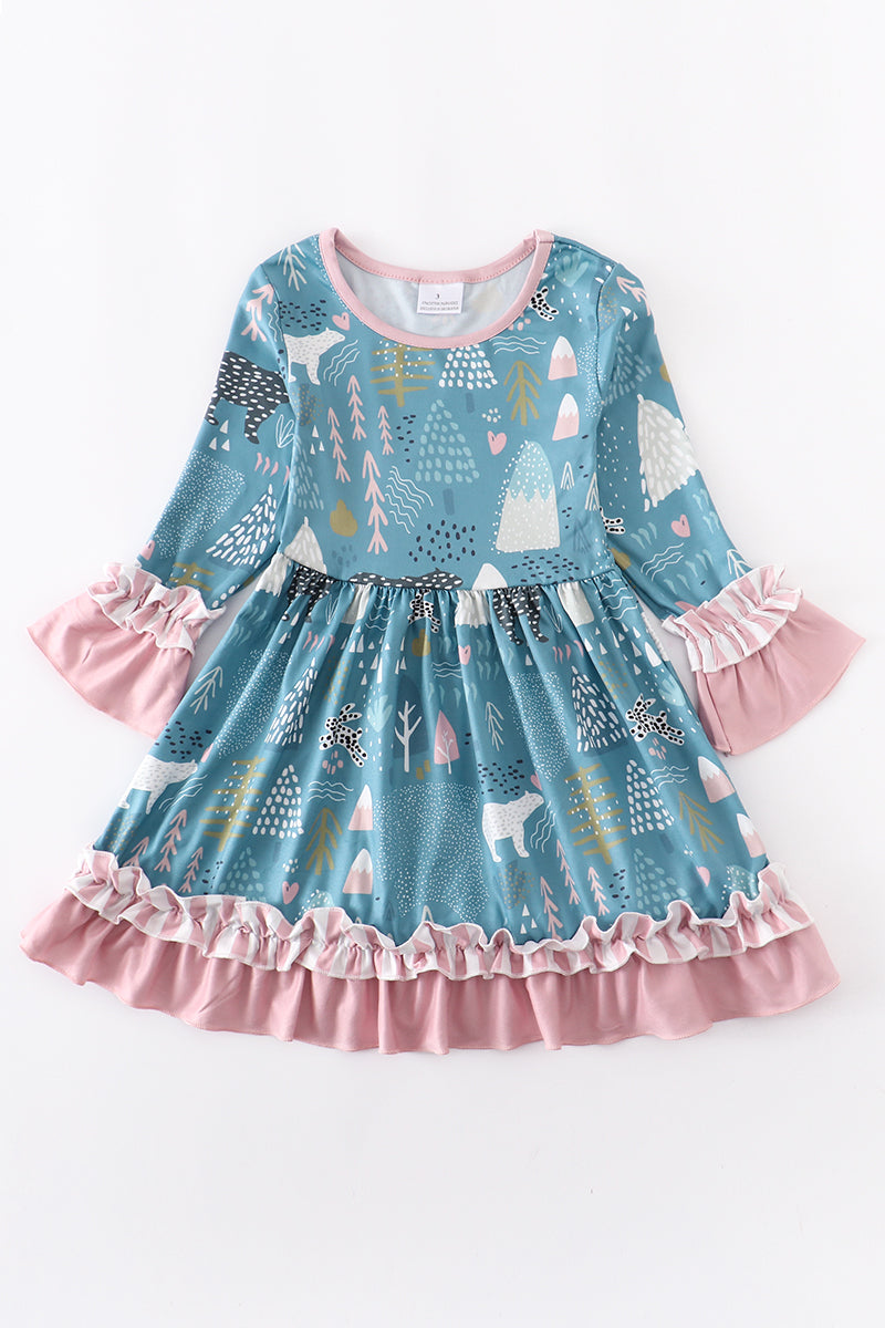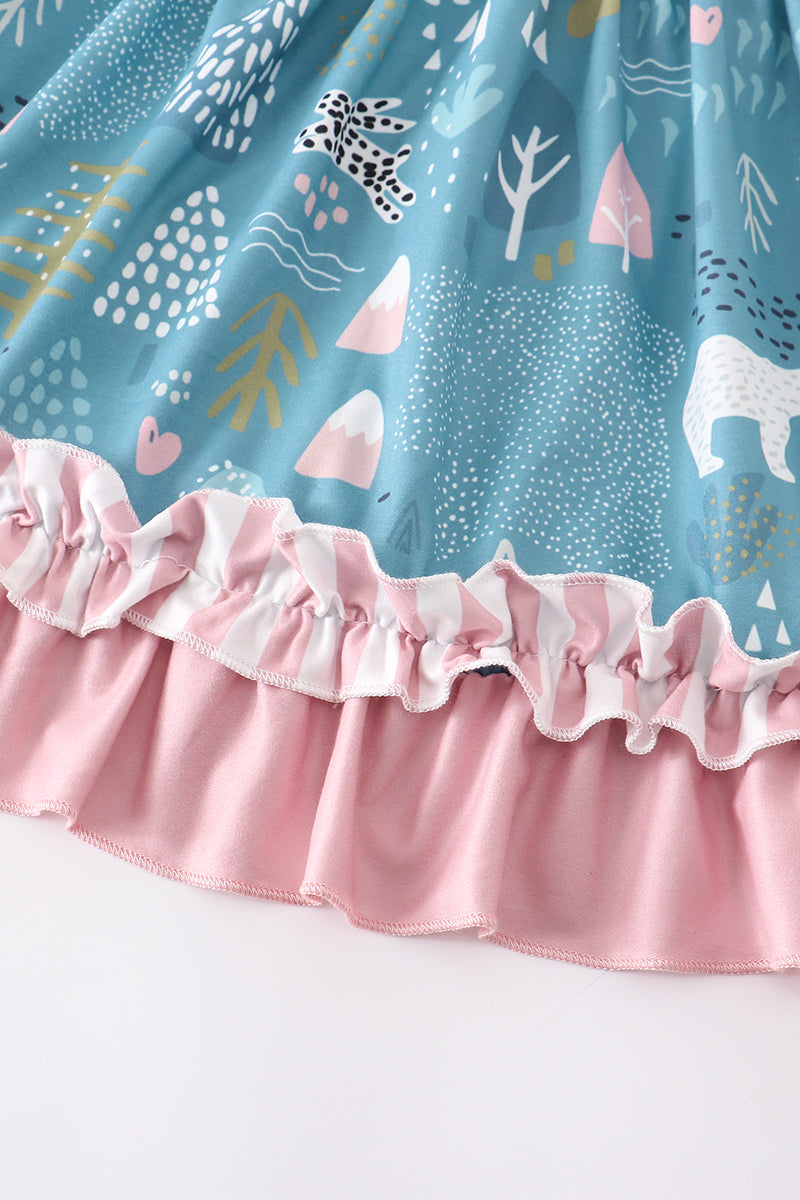 Pink/Teal Christmas Wonderland Ruffle Dress