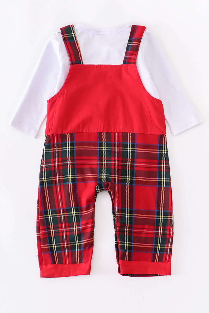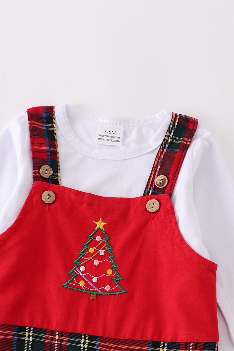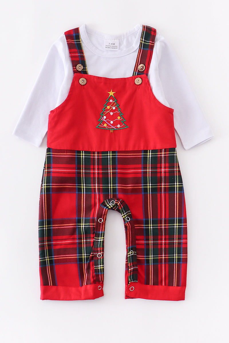 Red Plaid Christmas Tree Overall Set