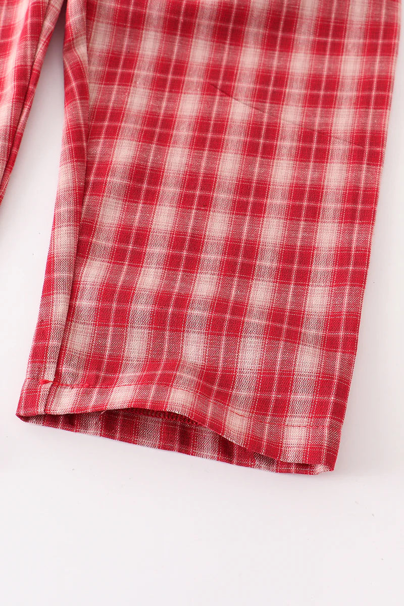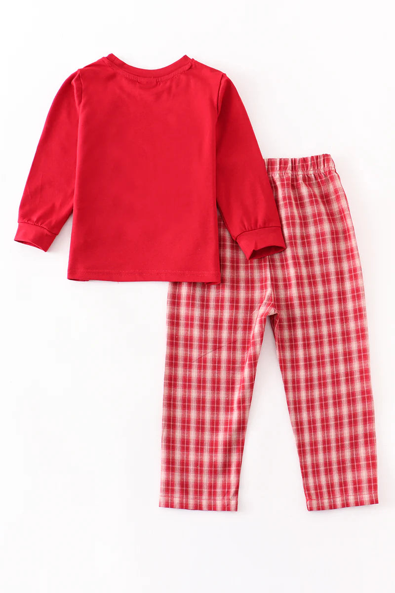 This little Snowman set just looks so warm and comfy! The red shirt complete with the very happy and adorable looking snowman pair perfectly with the red and white plaid pants. The perfect choice for a cold Winter's day.